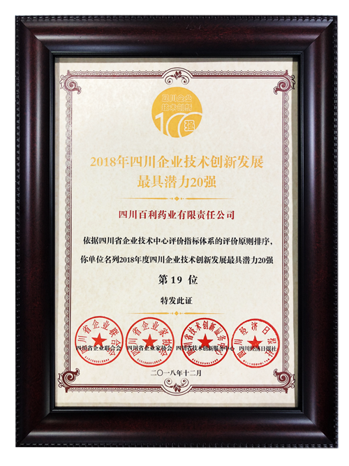 公司是国家高新技术企业,国家知识产权优势企业,拥有四川省省级企业技术中心,是四川省企业技术创新发展能力百强,累积承担国家科技重大专项“重大新药创制”9项,“国家重点研发计划”1项、“中国制造2025”工业转型升级项目1项,承担省级重大科技专项、科技支撑项目等省部级项目13项,公司技术和研发能力得到国家与省部级政府部门、科研机构等单位的认可,是中国儿童药物研发与产业化联盟成员单位。